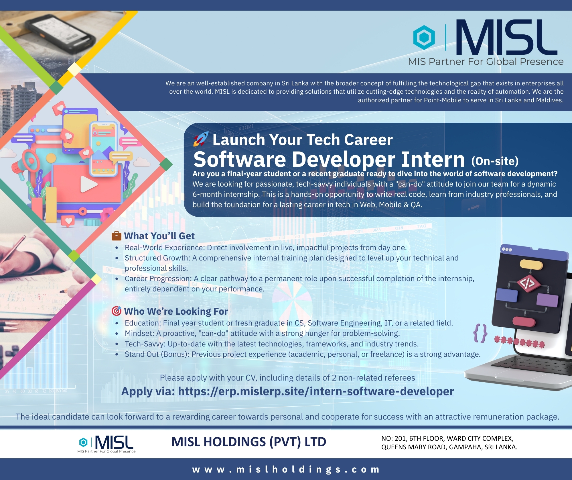 Are you a final-year student or a recent graduate ready to dive into the world of software development? We are looking for passionate, tech-savvy individuals with a "can-do" attitude to join our team for a dynamic 6-month internship.